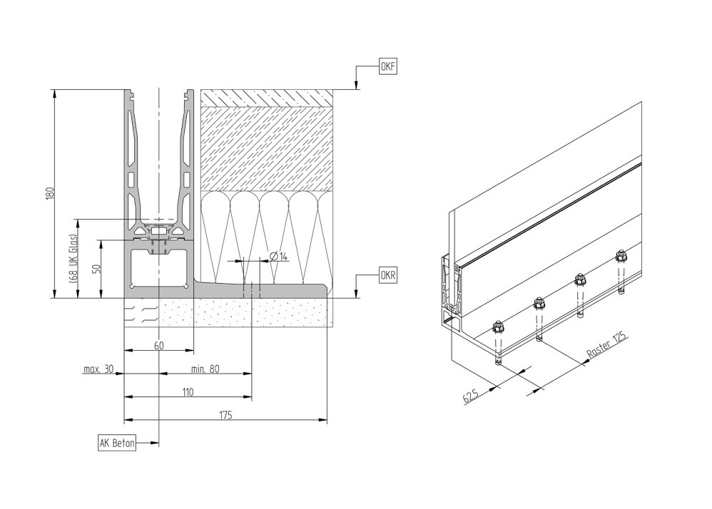 Privater Bereich mit Windlasten und öffentlicher Bereich ohne Windlasten gemäß Systemstatik