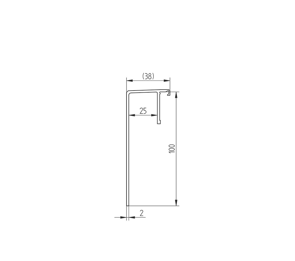 Abdeckprofil 100mm zur Entwässerung, 38mm Breite