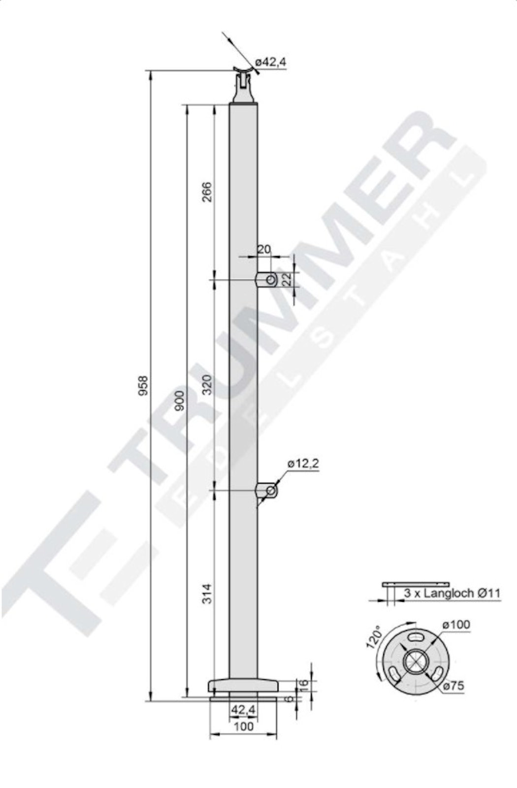 - 1x Handlauf Ø 42,4 x 2,0 mm (Länge: 3,00 m)
