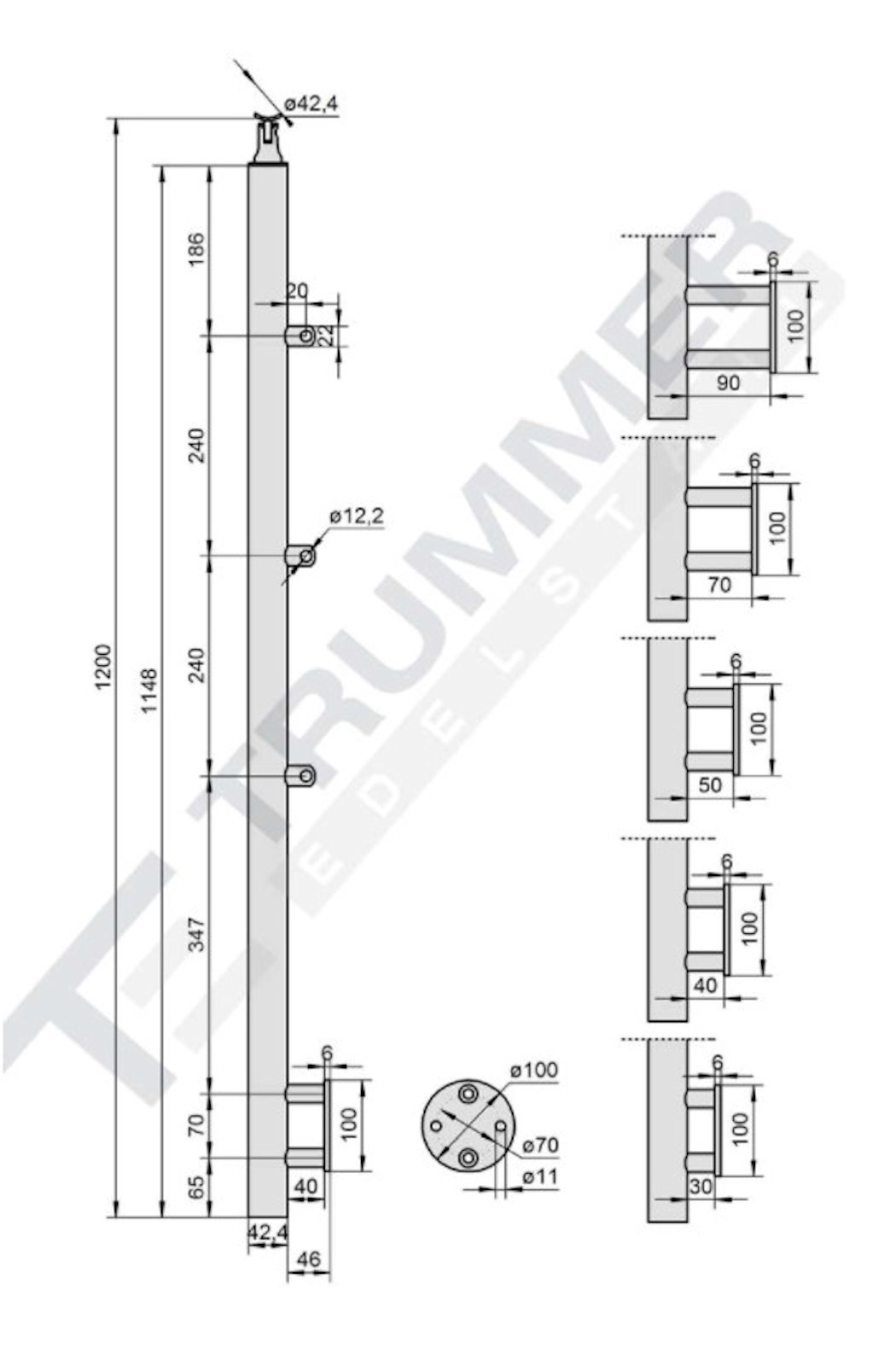 Gesamthöhe des Geländers ohne Handlauf: 1200 mm